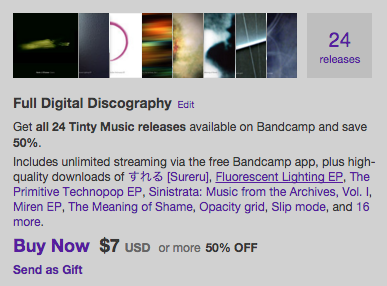 I say ‘of sorts’ because it’s not immediately apparent until you go to the page for a specific album. Either way, Bandcamp have now made it possible to purchase an artist’s entire discography all at once (assuming the artist opts in, that is).