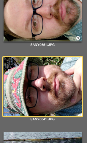 I’ll use a self-portrait from 2006 (I miss that hat) as an example. First, the thumbnail that iPhoto shows me: