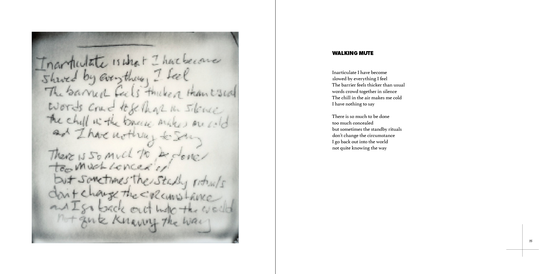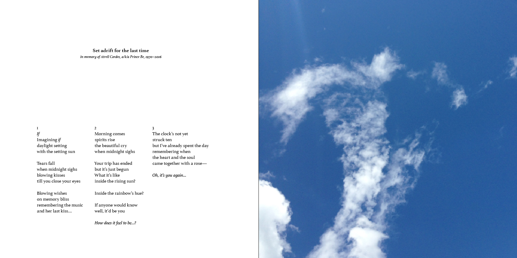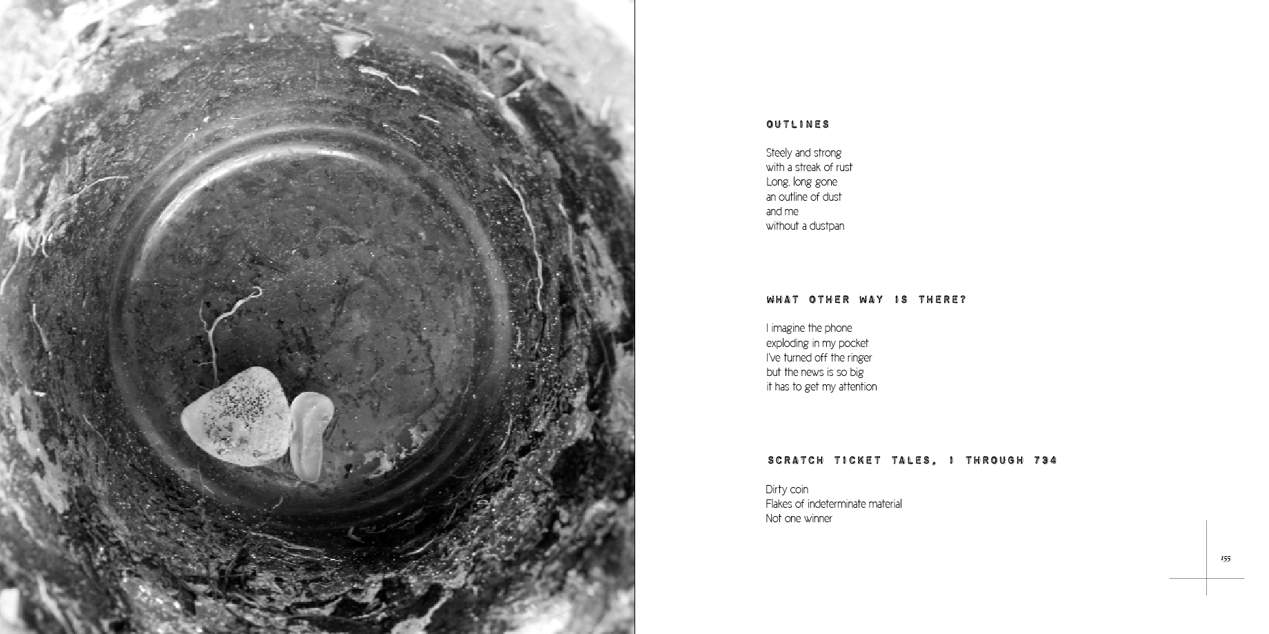 A lot of what I did last night involved relatively minor adjustments, as opposed to bigger layout stuff. In the Formalities section, I changed the poem title typeface to match that on the title page for the section, added three or four poems (and photos), and made a few minor adjustments here and there. In the Oddities section, I added a few poems (but have yet to pair all of them with visuals), made a few adjustments here and there, and replaced the graphic accompanying ‘The Real New World Order’. If this book were software, last night’s changes would constitute a maintenance update.