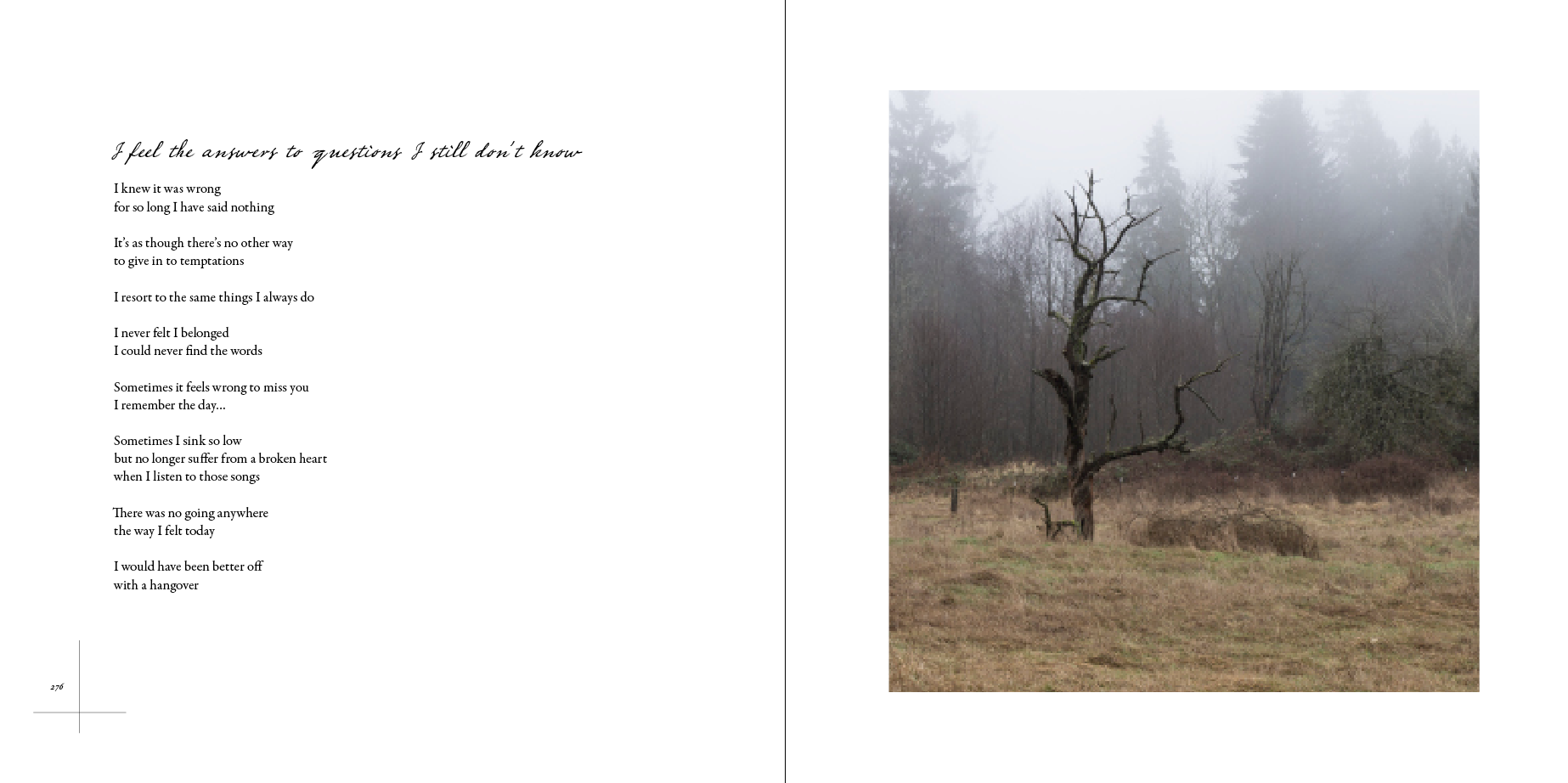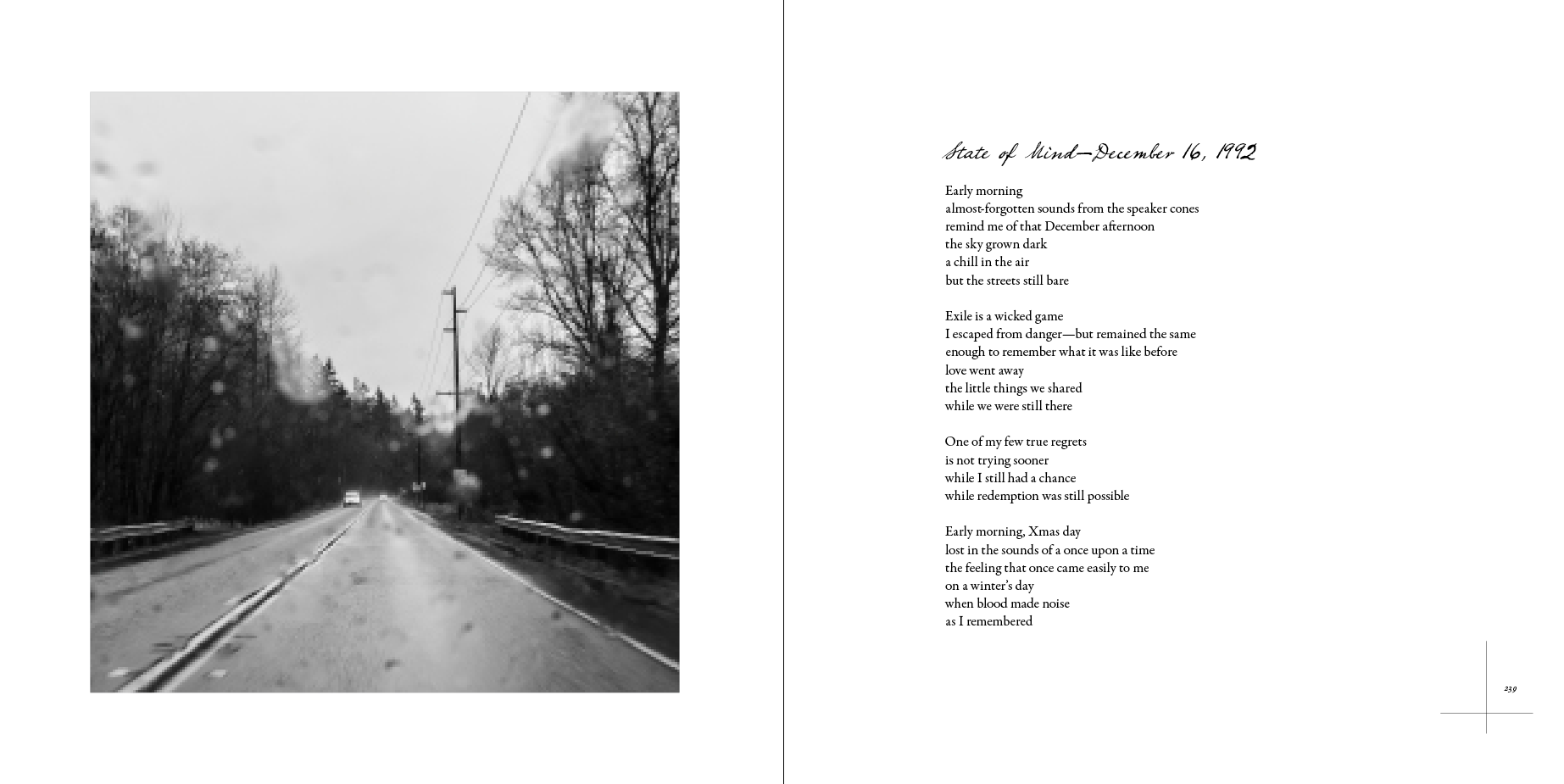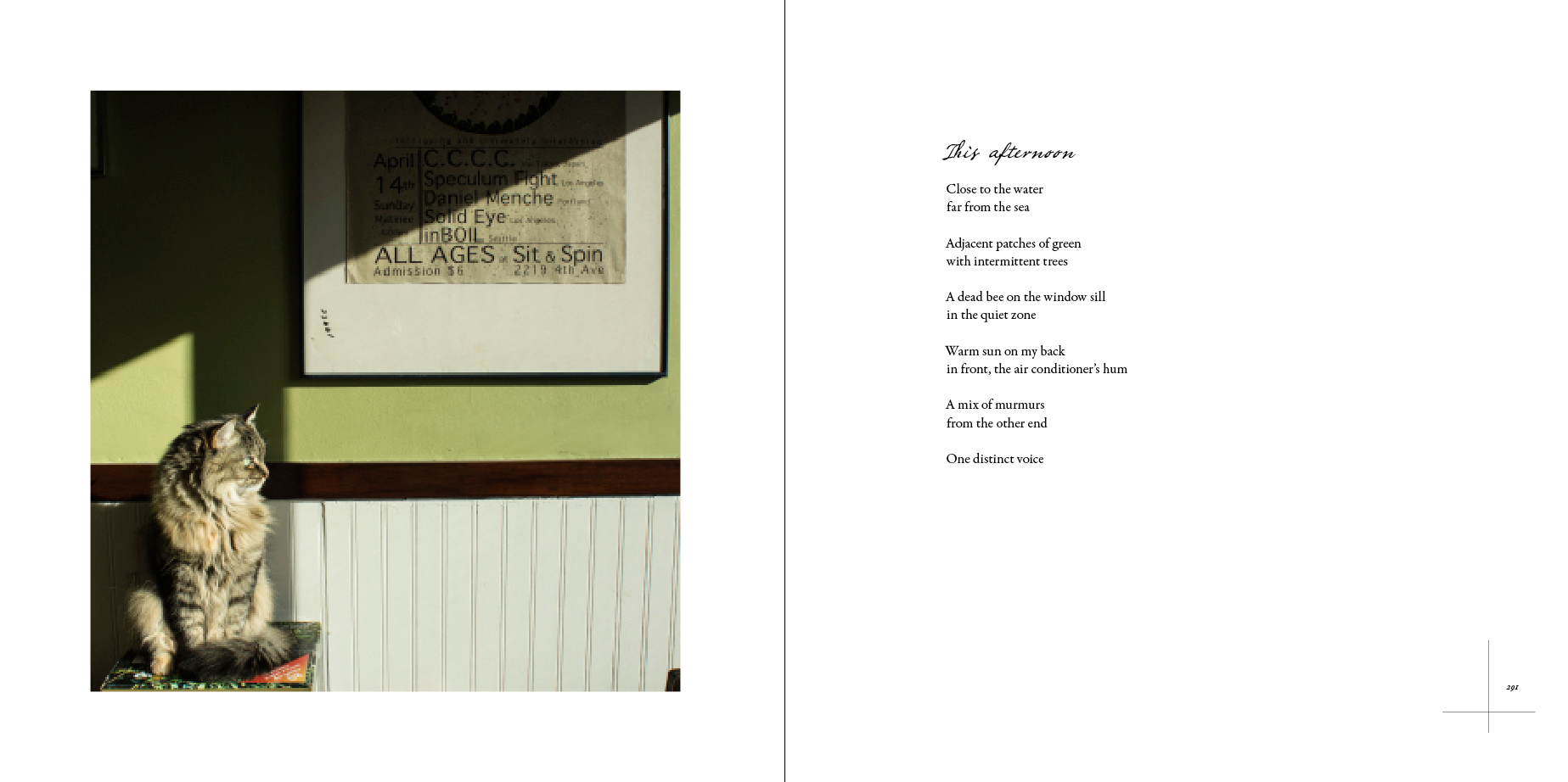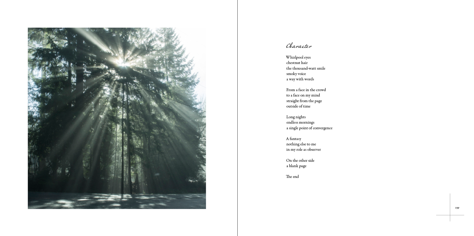 Compared to the previous sections, this one was much more straightforward, with a uniform photo size, and no poems requiring both pages of the spread. Naturally, I may change some of my photo choices (and there will also be editing), but the basic form is in place.