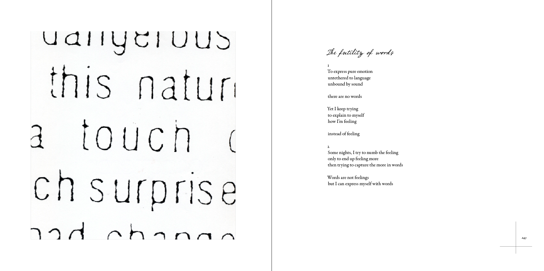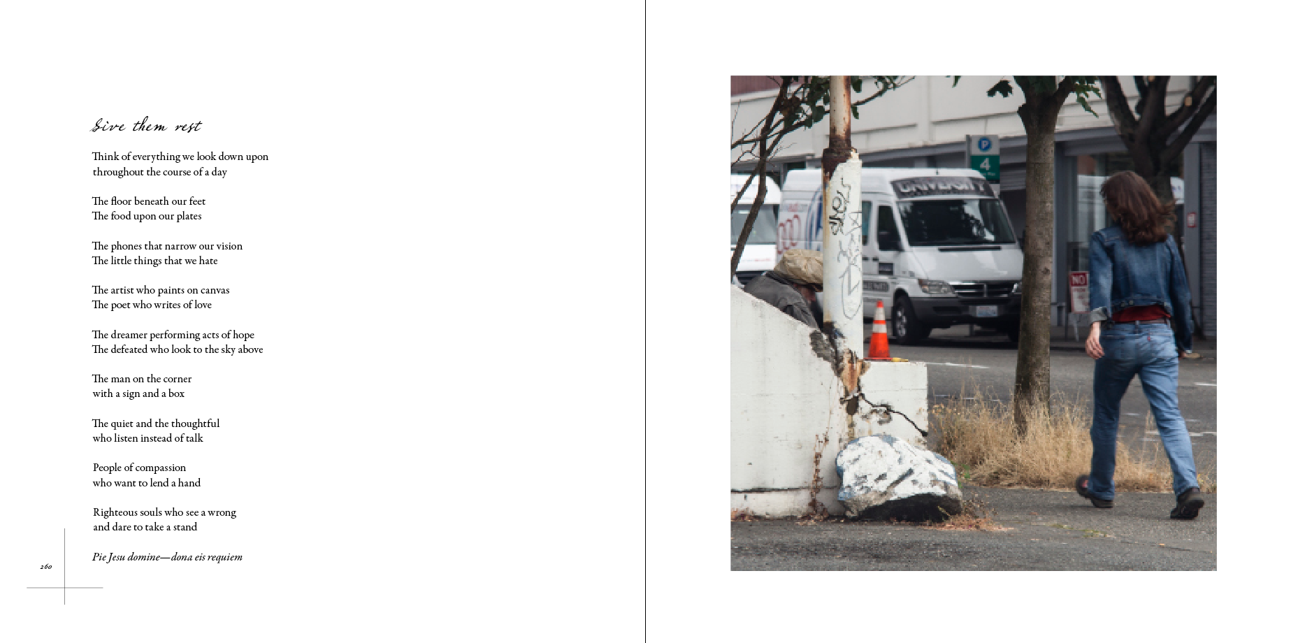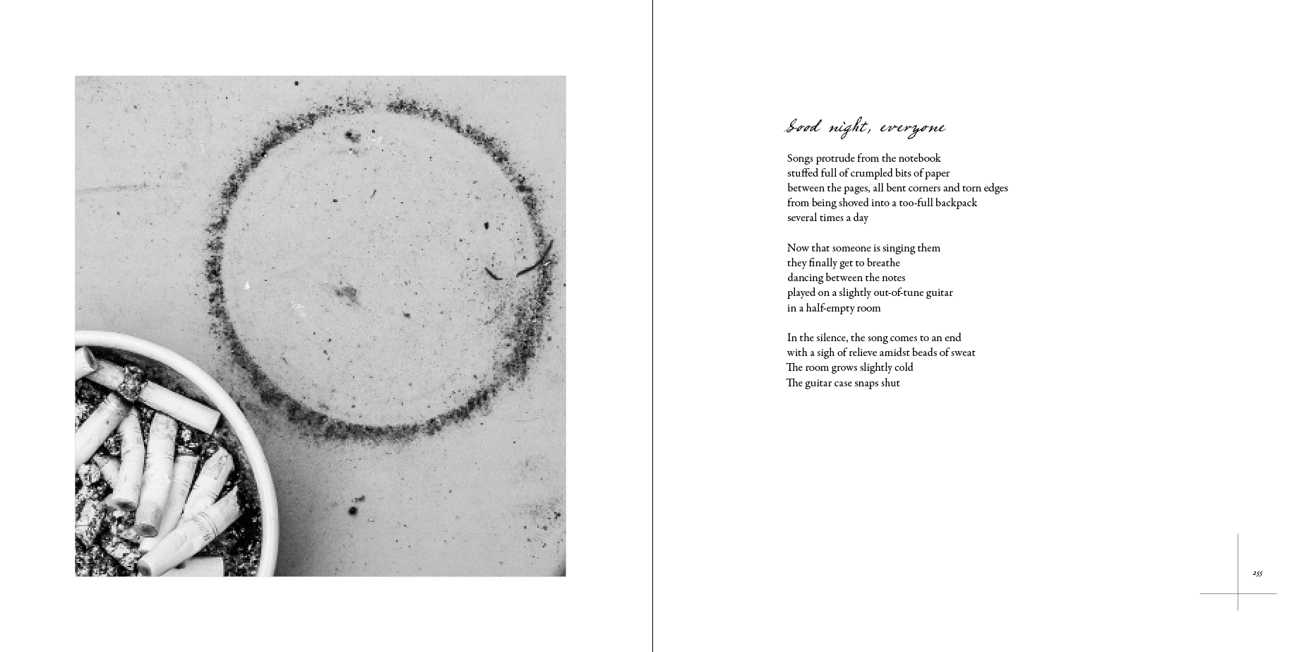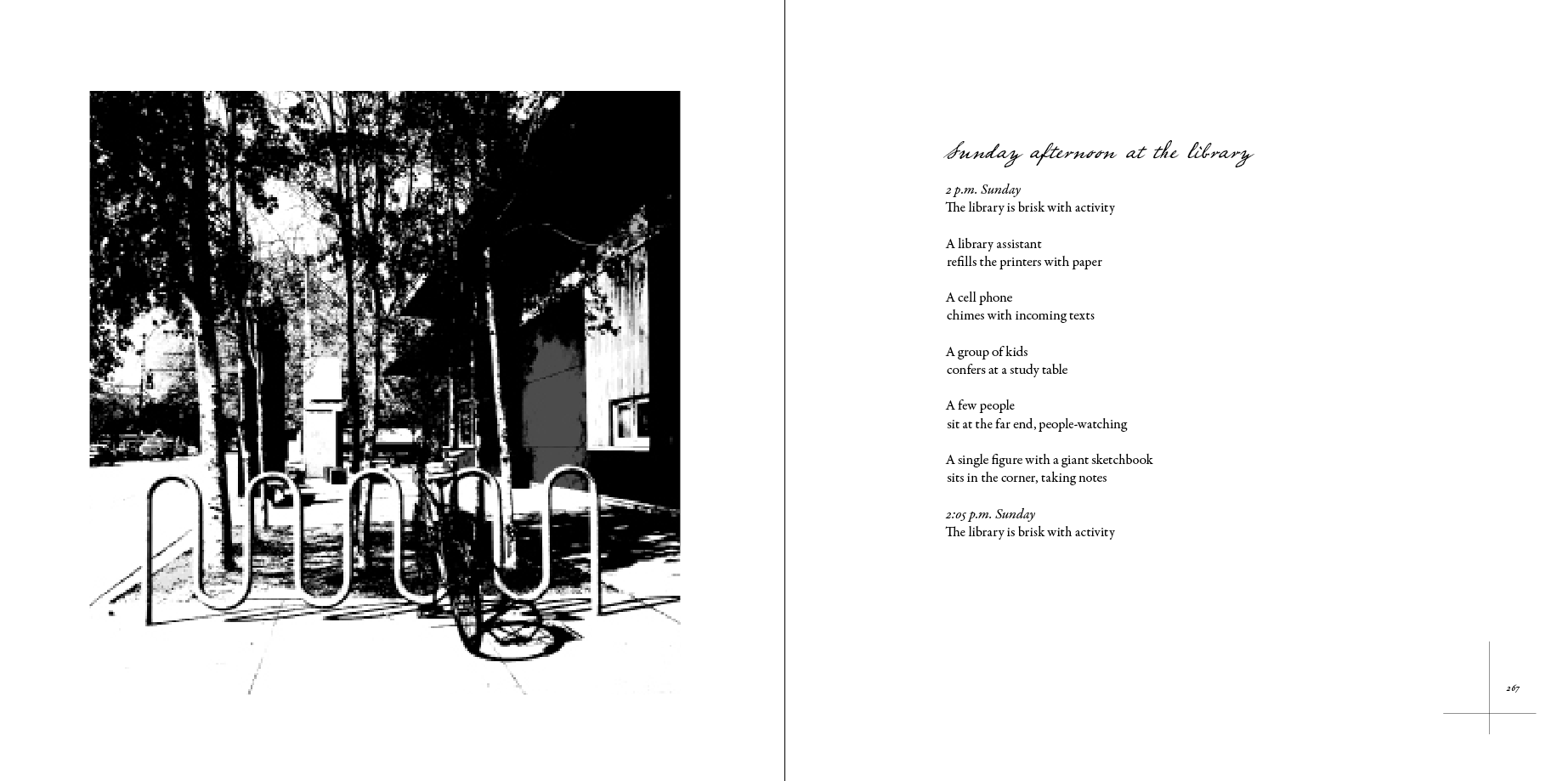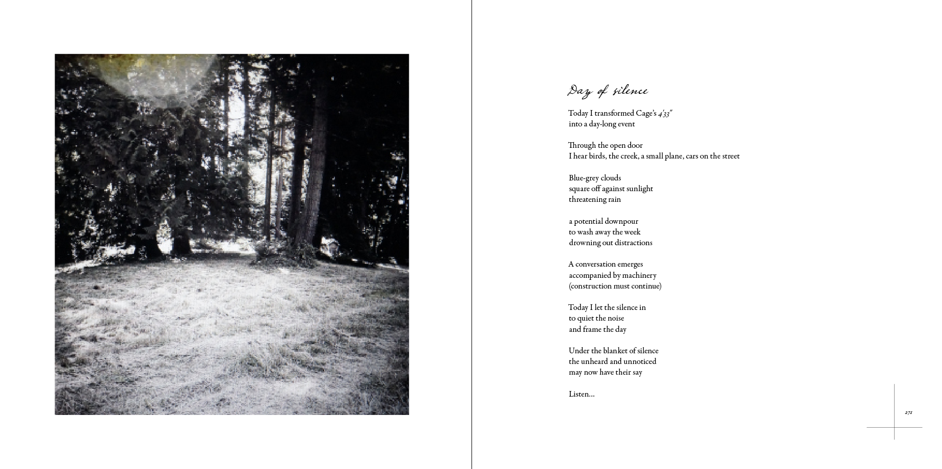 Compared to the previous sections, this one was much more straightforward, with a uniform photo size, and no poems requiring both pages of the spread. Naturally, I may change some of my photo choices (and there will also be editing), but the basic form is in place.