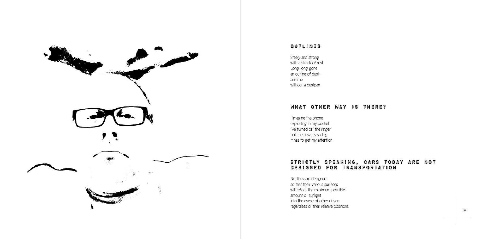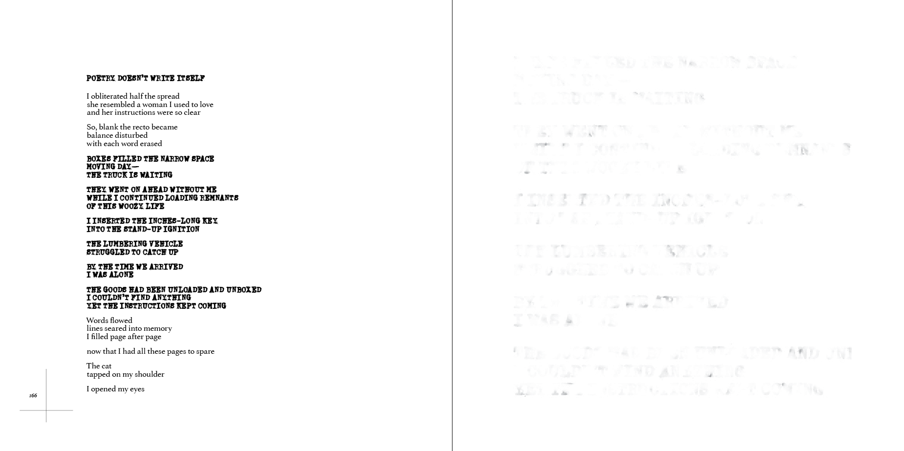 Apart from a few minor bits and pieces, I added a couple of poems, deleted a couple of poems—and one of InDesign’s unexpected crashes deleted one spread for me (in that the original spread was not recoverable—though I probably still could retrieve it from my most recent backup). The total page count now stands at 316.