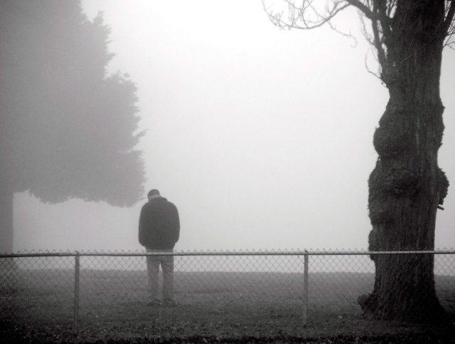 For this early-bird poem, I followed the napowrimo.net prompt—sort of. Instead of a self-portrait as a historical or mythical figure, I made myself the figure in a photograph I took in January 2009 of a man standing in a graveyard.