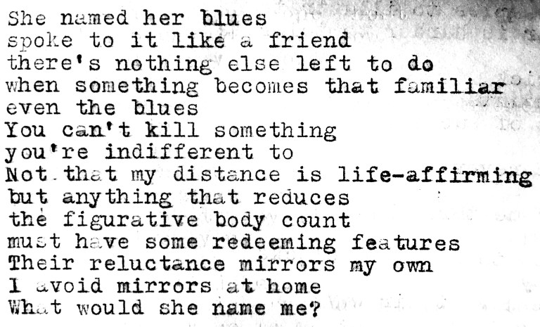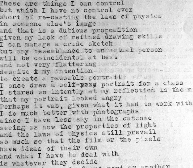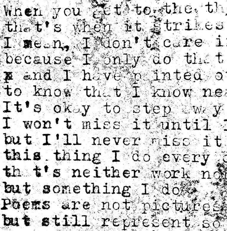A new typewriter poem—or 75% of it, anyway. The last section didn’t add anything worthwhile, so I cut it in favor of the last line here.